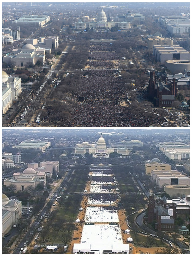 Images from Obama (2009 on top) and Trump (2017 on bottom) inauguration.